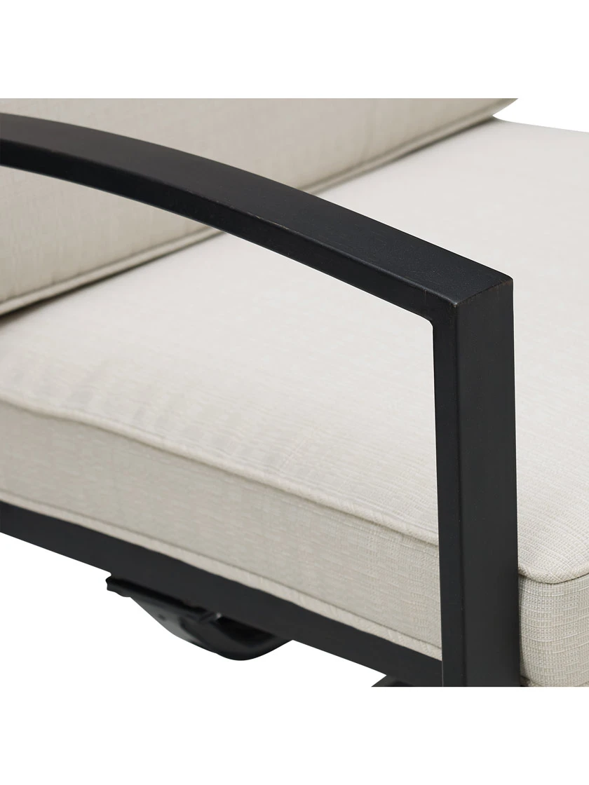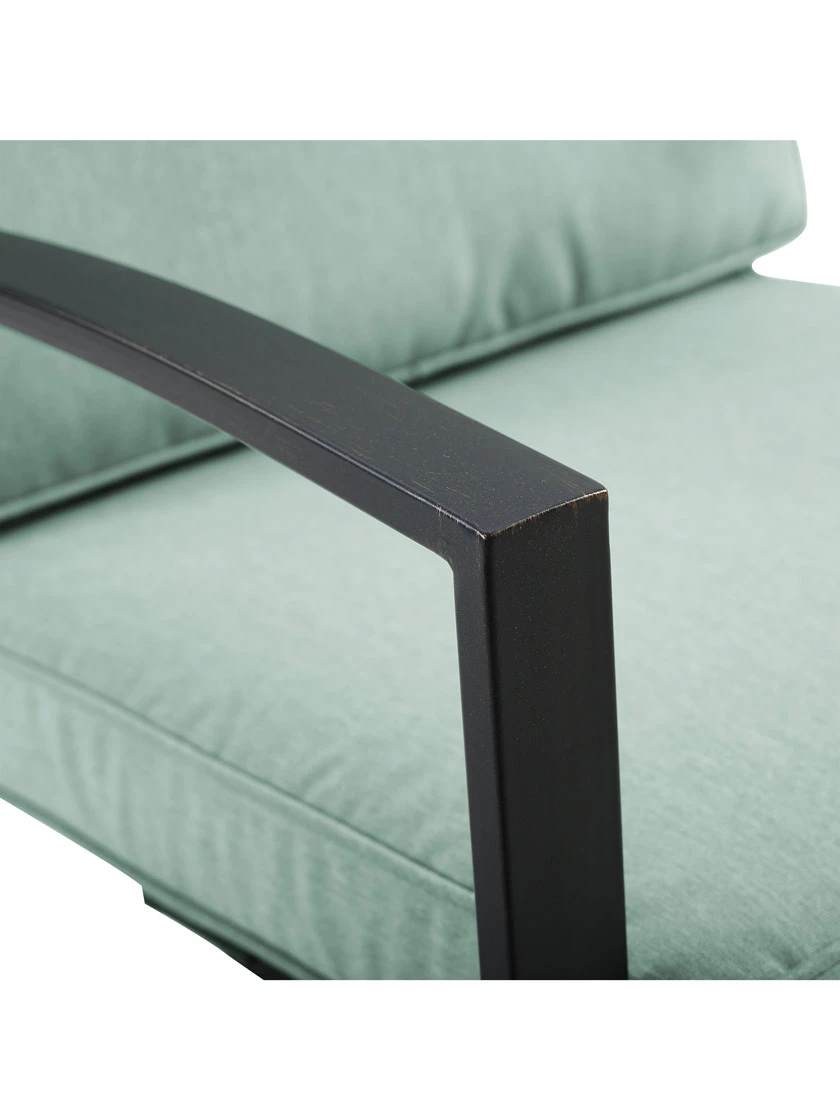 - Cushions: solution-dyed polyester; 2.375″ thick foam