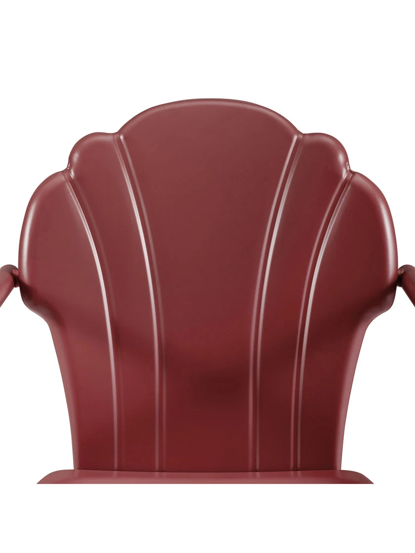 Charming and nostalgic, the Tulip 3pc Bistro Set combines vintage style with classic function. Two scalloped chairs in vibrant colors surround a simple metal bistro table for a fun and functional outdoor lounging experience. The retro silhouette of each chair sits atop a cantilever base that provides just enough flex for lounging in comfort. The table’s sturdy pedestal base is comprised of four metal legs and easily tucks between the chairs, making the Tulip 3pc Bistro Set ideal for a small balcony and patio.