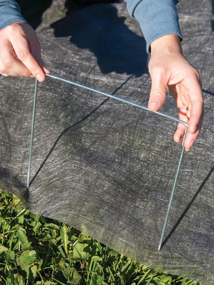 Our extra-wide galvanized steel earth staples keep hoops and large swathes of landscape fabric firmly in place, with less chance of rips and tears.