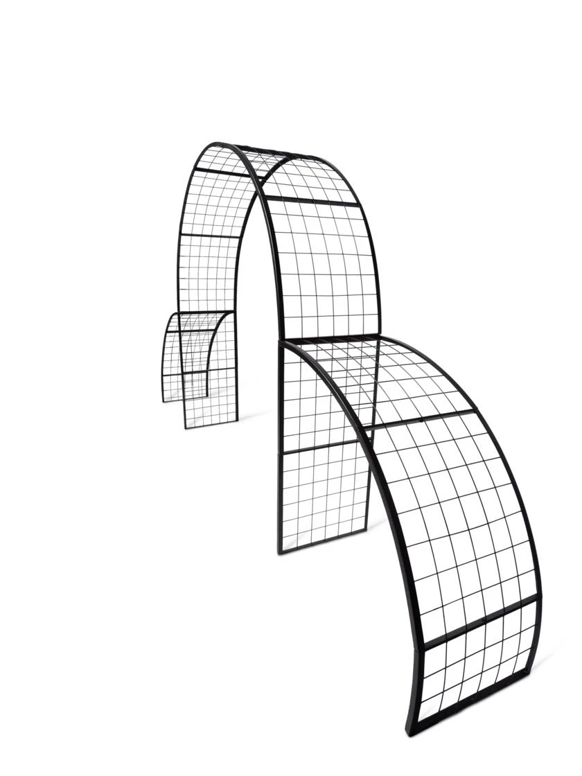 Create an (edible!) entrance like no other. Try cukes on the side wings, greens underneath, beans on one side of the tall arch, and peas or squash on the other. Or go with something sweet-smelling and dramatic like climbing roses, clematis, or morning glories. The possibilities are endless! The grid spacing is perfect for most fruiting vine crops and the sturdy steel construction won’t bend or buckle under an abundance of fruit.